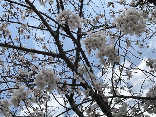 朝イチディーラーに行って点検とタイヤ履き替えを済ませた後、近くの公園で花見ランチ。 広いグランドのすみで、うちをあわせて3組くらいでのびのび。