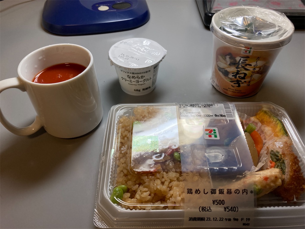 2023-12-22 出張3日目 日記 3日目の朝は、コンビニ弁当。 昨日の夜はイトーヨーカドーまで行く元気も時間もなし。 午前中は現地で、午後は会議室を借りてひたすら作業。 明日の本番の準備は何とか整った。 夜は、近くのラーメン屋。 味噌ラーメン食べたけど、千葉のガキ大将のほうが好き。 ラーメン食べたら21時半から残りの作業を少し。 部屋にもどったのは23時ころ、宿舎の選択は22時までしかできないルールのようで、今日はあきらめ。厳しい。